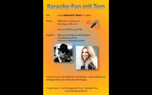 Am Mittwoch 4. März findet der erste Karaoke-Fun mit Tom statt. Und gleich am Samstag 21. März die zweite. Wir